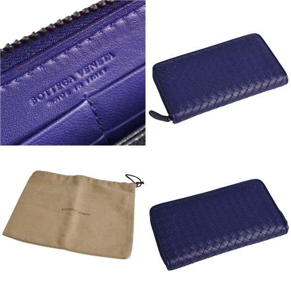 極美品 ボッテガヴェネタ BOTTEGA VENETA 財布 ラウンドファスナー ロングウォレット イントレチャート メンズ ネイビー