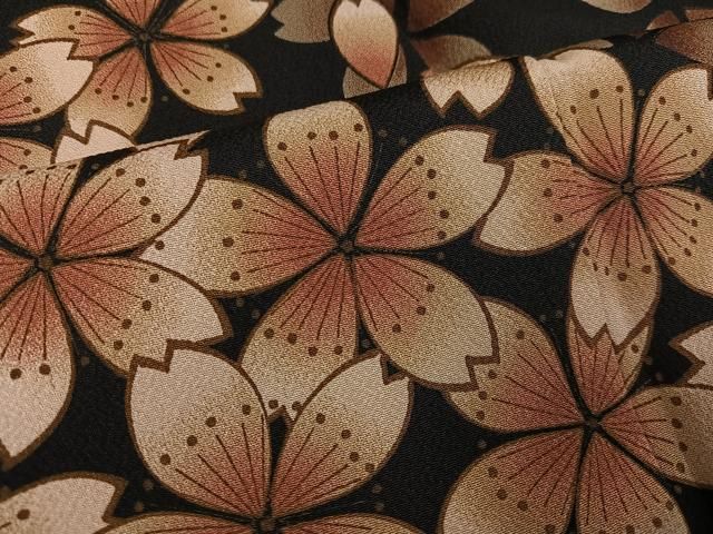平和屋着物 小振袖 二尺袖 舞桜 黒地 洗える着物 ph