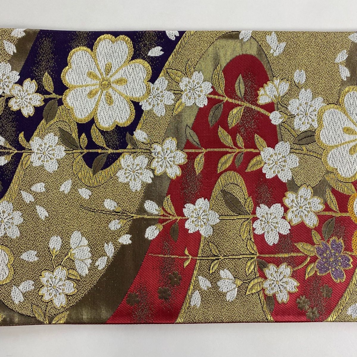 袋帯 秀品 桜 霞 唐織 箔 赤紫 六通 正絹
