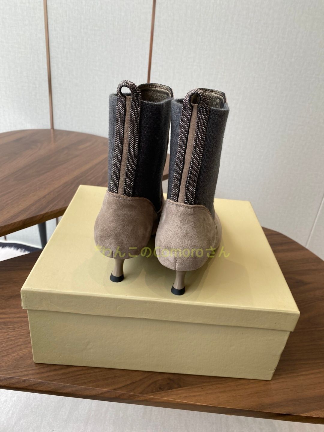 23.0 cm 24.5 ブルネロクチネリ レディース ポインテッドトゥ チェルシーブーツ スエード キトンヒール エレガントスタイル