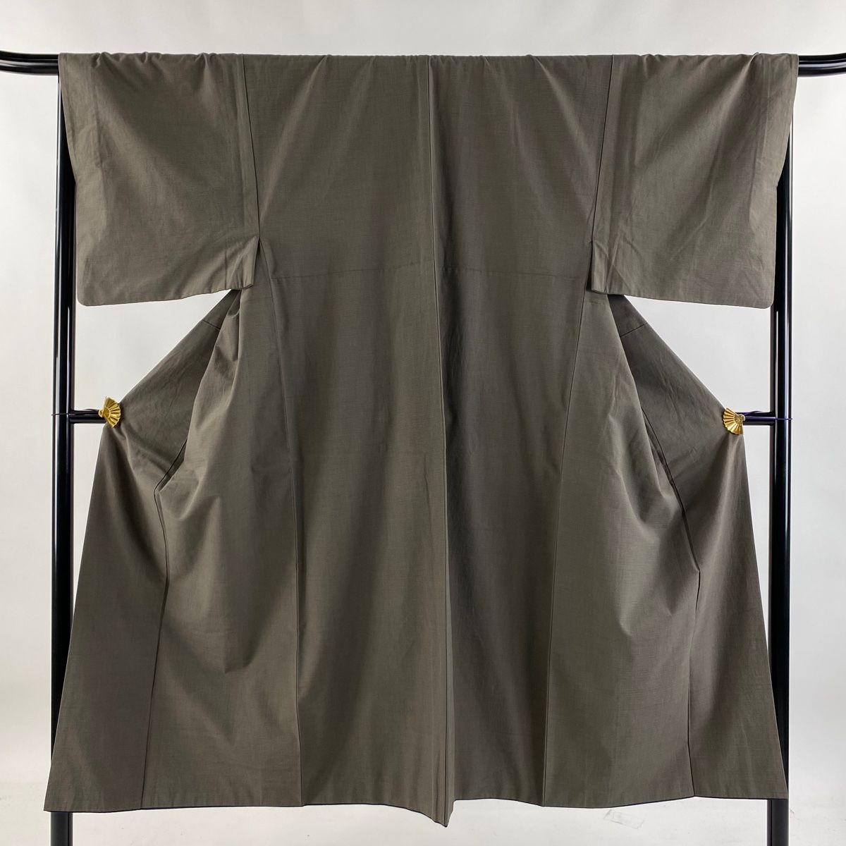 男着物 身丈141 cm 裄丈68 L 袷 アンサンブル 紬 永江明夫 綿薩摩 落款 縞 灰茶 綿