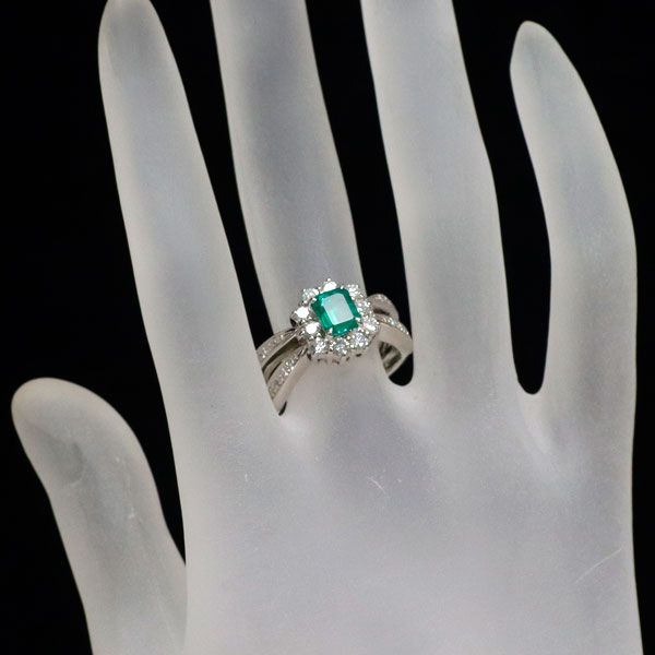Pt 900 エメラルド ダイヤモンド リング 0.80 ct D 0.60