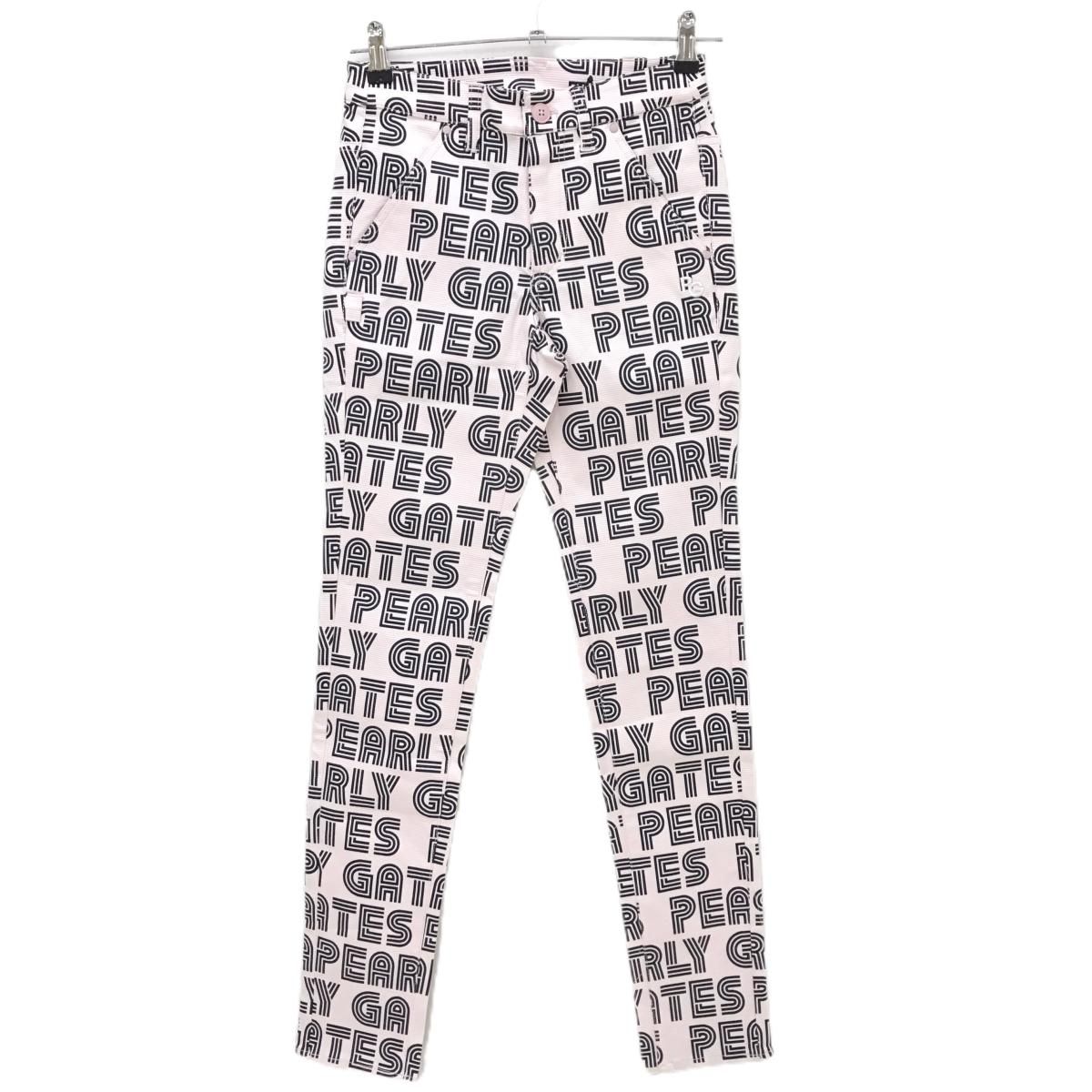 パーリーゲイツ パンツ ライトピンク×ダークネイビー ロゴ総柄 ボーダー織生地 レディース 00 XS ゴルフウェア PEARLY GATES