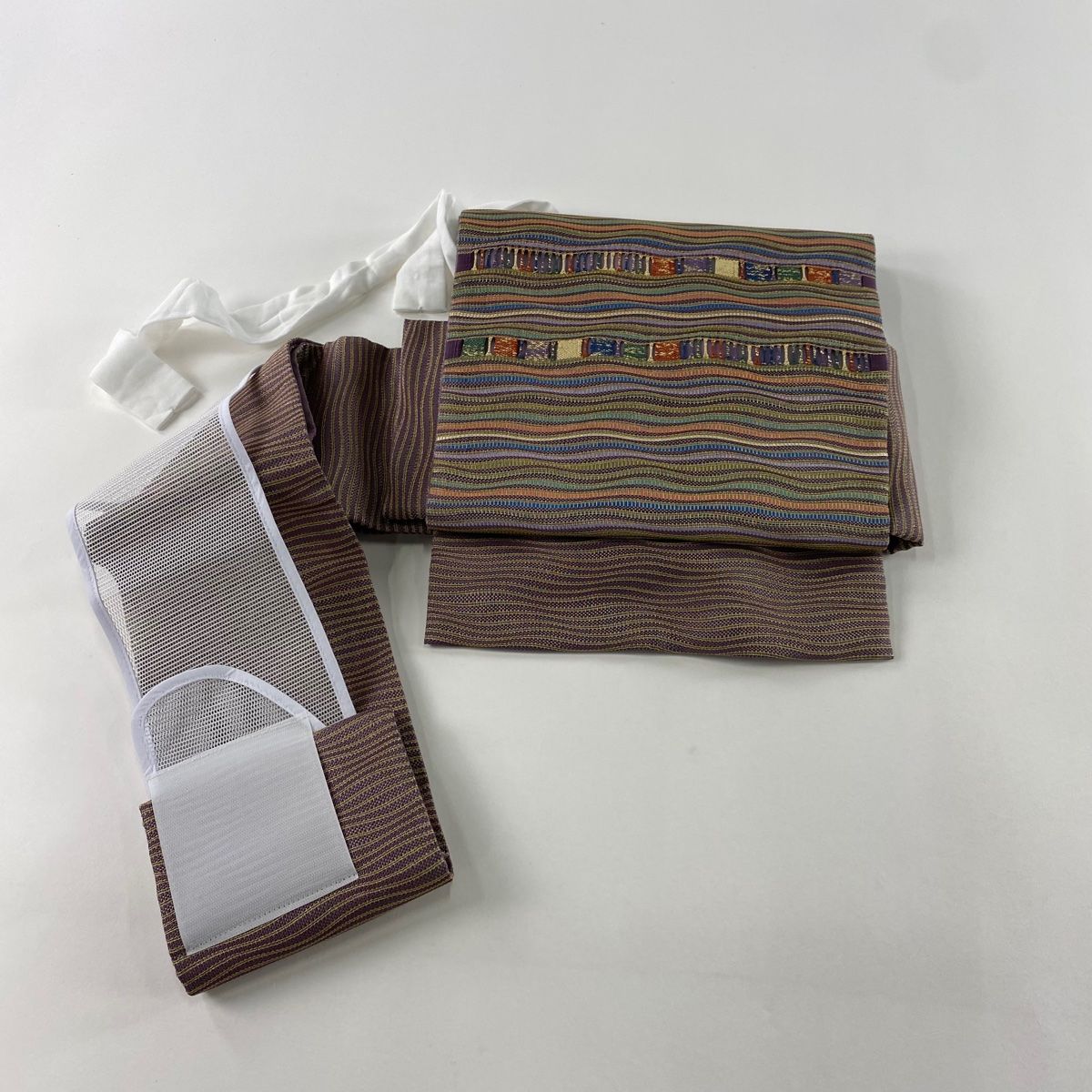付け帯 作り帯 よろけ縞 幾何学模様 金糸 箔 紫 正絹