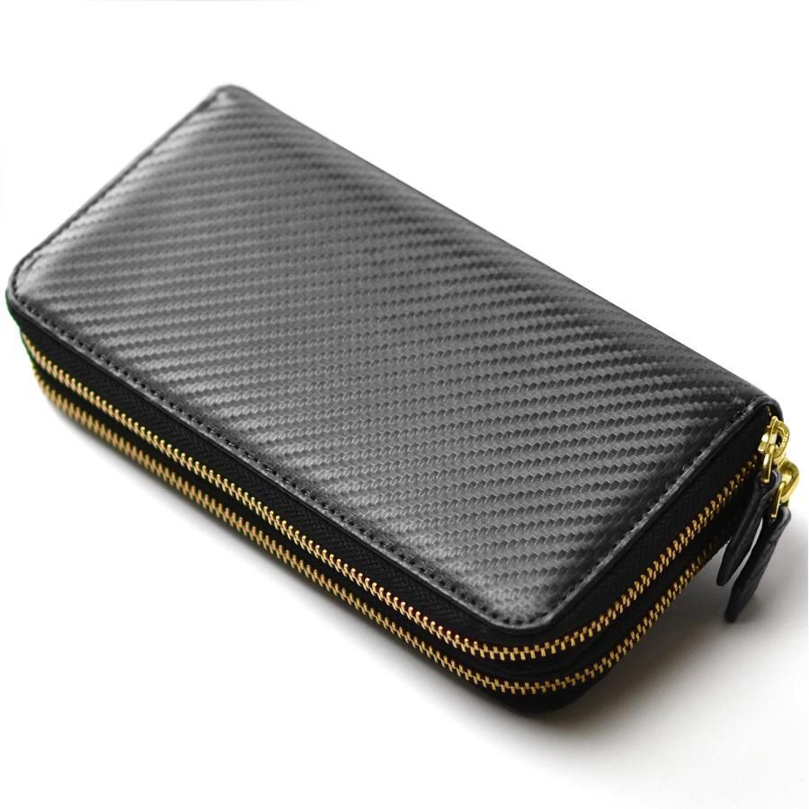 Merge カーボン加工ダブルラウンドファスナー長財布 MG-1866 ブラック 大容量Wファスナー式