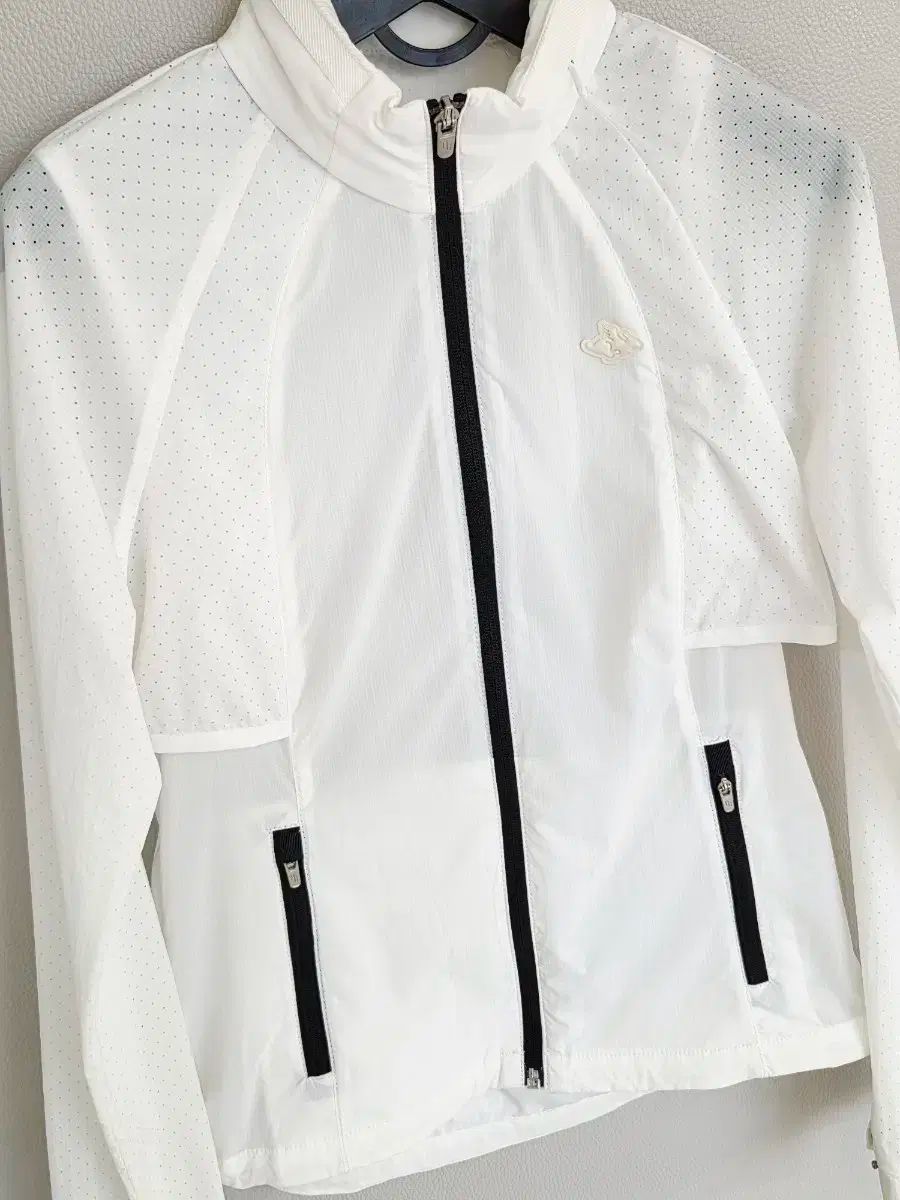 非常に軽量なウィンドブレーカーです。上半身は2重メッシュで重ねられており、汗の排出が良く、動きやすいです。ホワイト COLOR に POINT ブラック バイカラー でスタイリッシュでデザインが綺麗です。春、秋には単独で、冬にはサブインナーとして着やすいです。