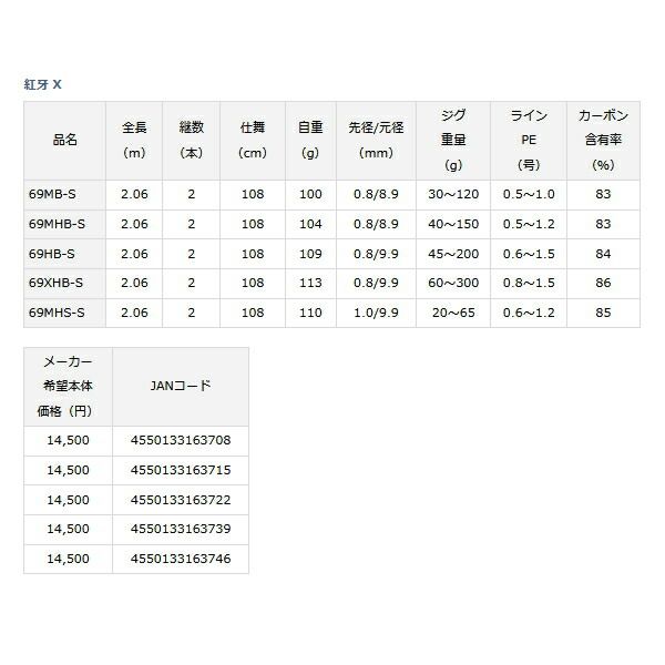 ≪ 22年 新商品 ≫ ダイワ 紅牙 X 69 MHS S 〔仕舞寸法 108 cm〕