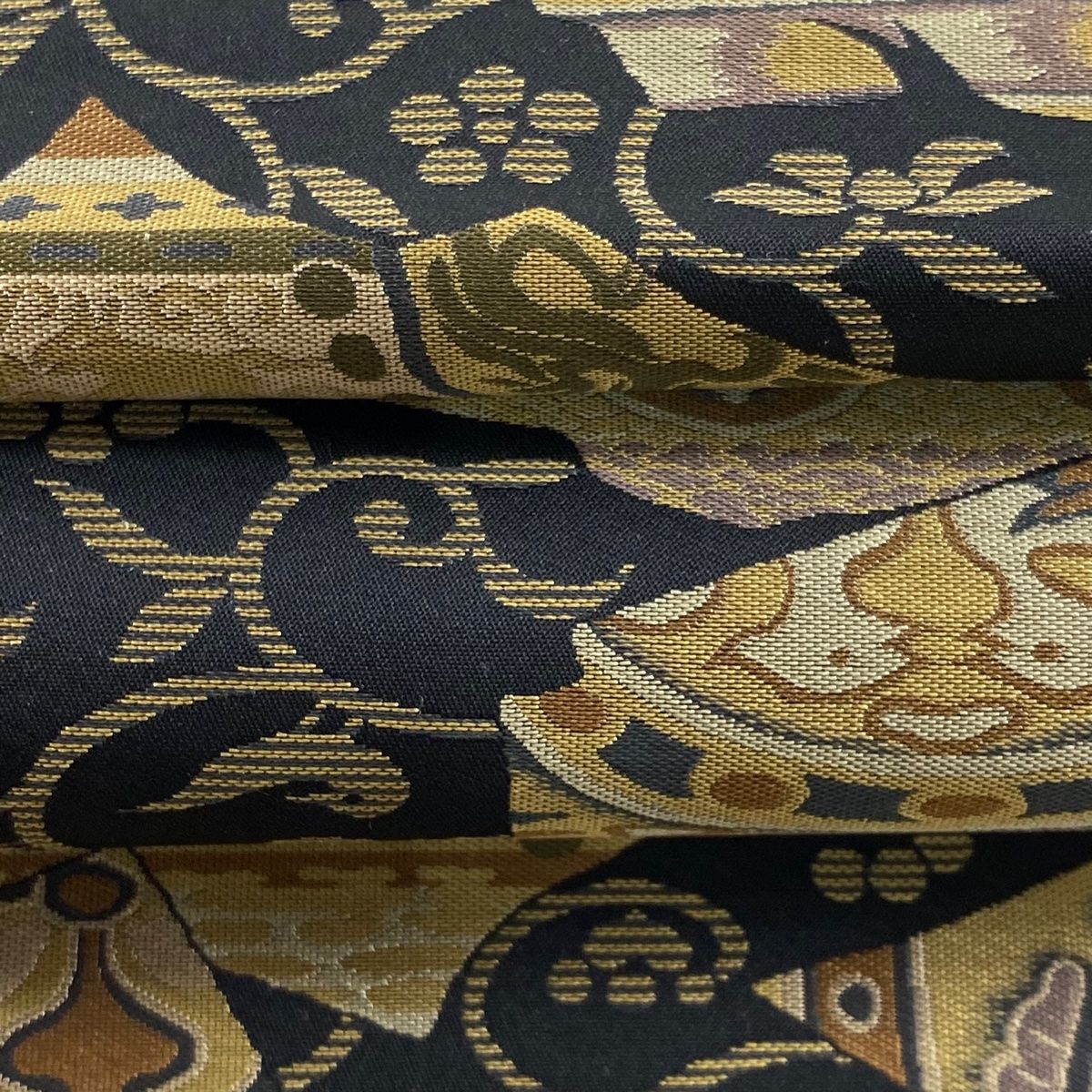 袋帯 菱屋善兵衛 落款 向鳥 花唐草 黒 六通 正絹