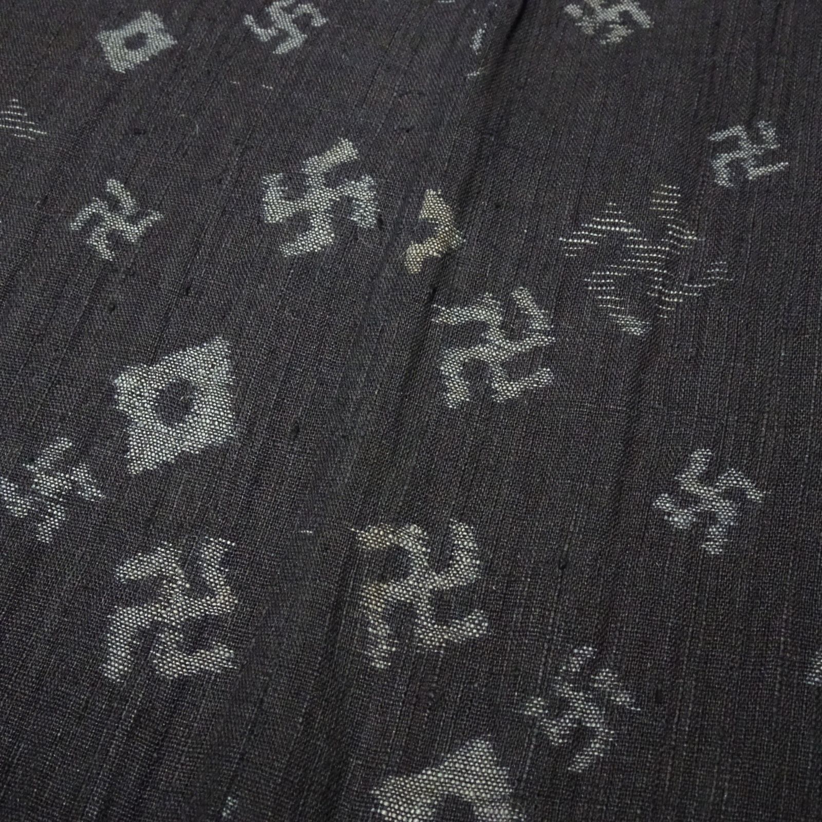 アンティーク 本麻 小千谷縮 着物 図変わり 日の丸 神社 卍 230200 y