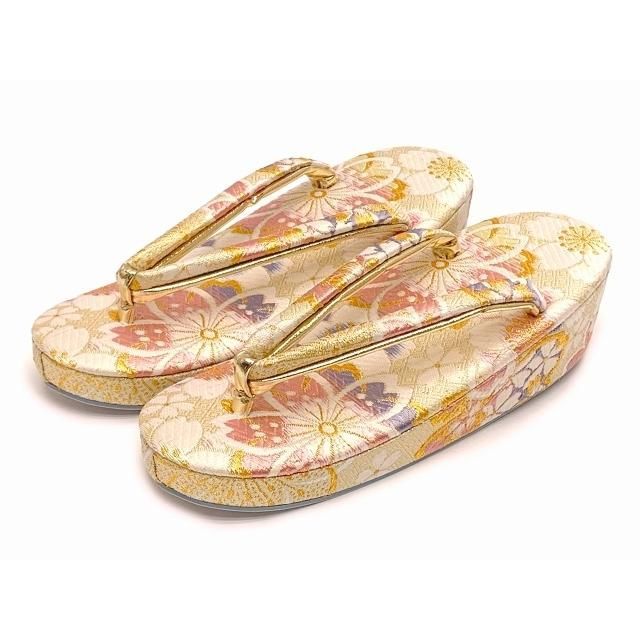 箱せこセット 七五三 女の子 金襴生地の筥迫 はこせこ セット 7歳用 草履21 cm 5歳用 草履18 シャンパンゴールド系 桜