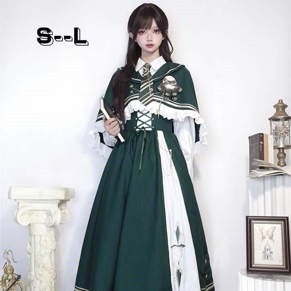 ロリータ セットアップ シャツ スカート ヨーロッパ 長袖 ロング丈 Aライン Lolita 編み上げ 魔法使い レディース コスチューム 仮装 cos