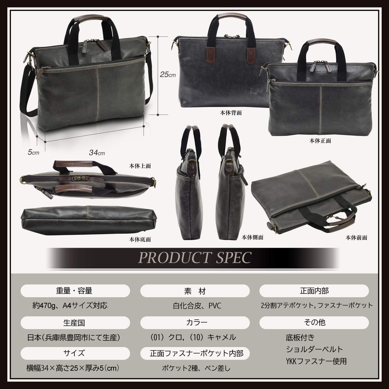 [平野鞄] 豊岡職人の技 日本製 ショルダーバッグ A4 +オリジナルムートングローブ (ブラック)