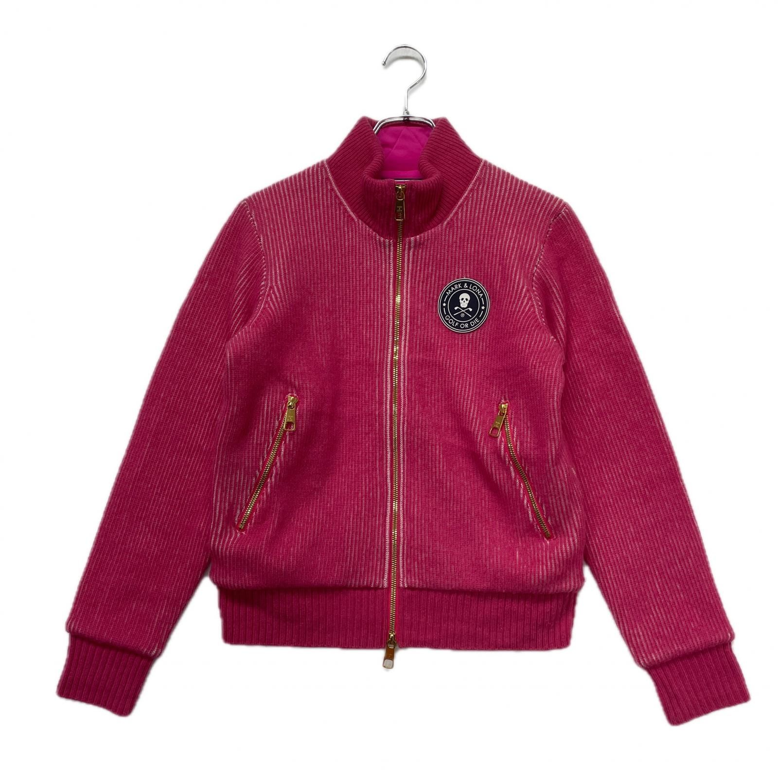 レディース マークアンドロナ MARK-LONA ニットアウター 38 M ピンク 中綿 ジャケット ダブルジップ スカル シリコンワッペン