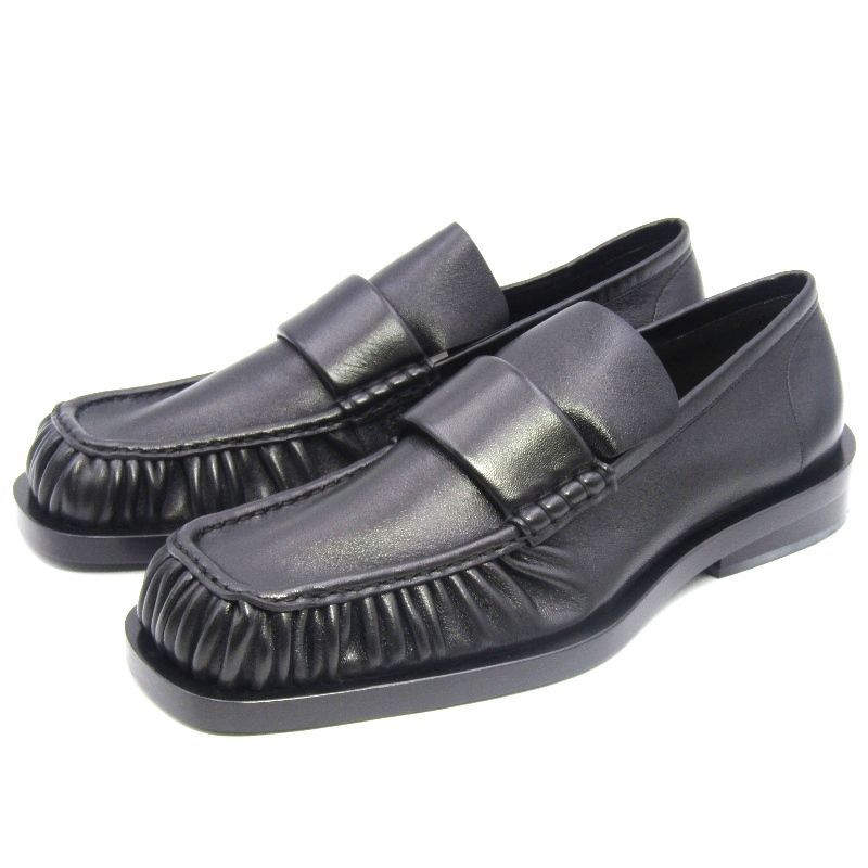 JIL SANDER ジルサンダー 44 フリルローファー P 4835 アンライニング モカシン ラムレザー 羊革 ブラック 黒