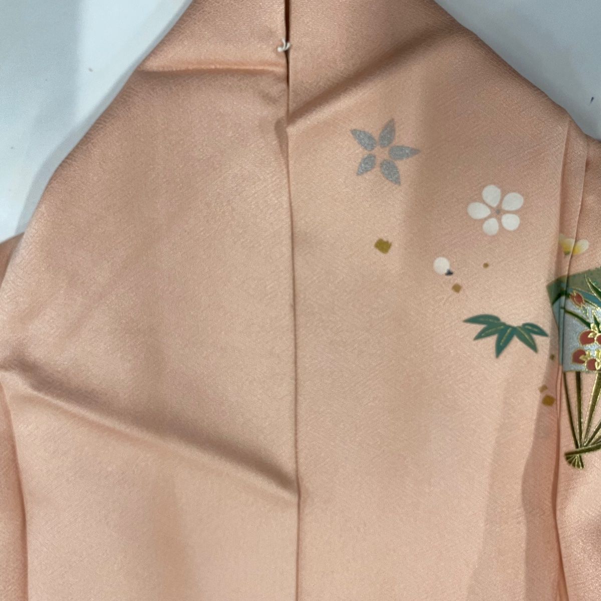 訪問着 身丈165 cm 裄丈66 M 袷 竹 草花 金銀彩 ぼかし ピンクベージュ 正絹 秀品
