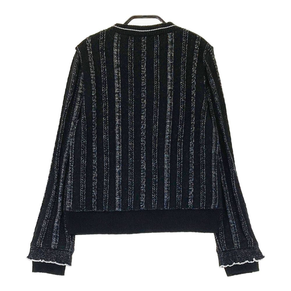 サイズ 38 MARK-LONA マークアンドロナ モデル 裏地付 ニットセーター フリル ラメ ストライプ柄 ブラック系 ゴルフウェア レディース ストスト