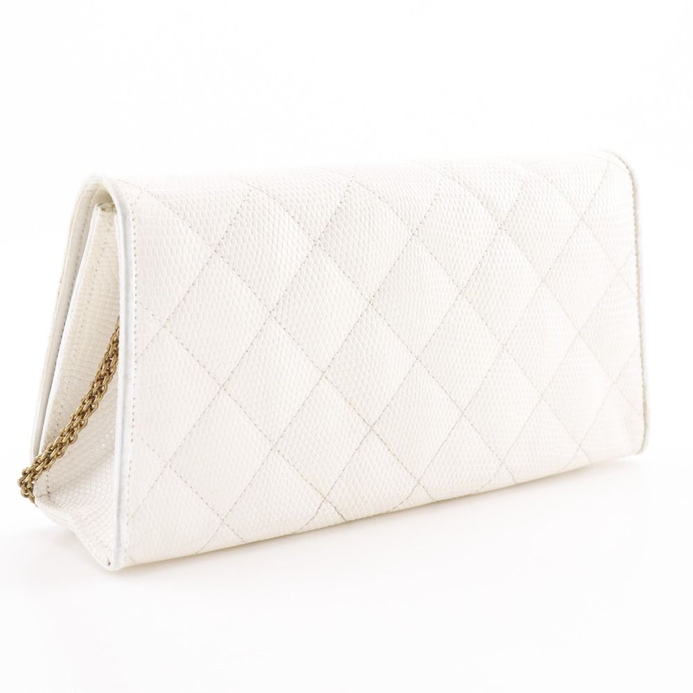 CHANEL シャネル チェーンショルダー マトラッセ ココマーク リザード 白 レディース ショルダーバッグ