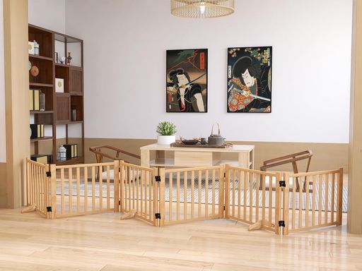 静かな空間を提供する木製フェンス:木製のため、金属製フェンスと比べて静かで、ペットに優しいです。同時に床との摩擦を減らすことができるので、床にも非常に友好的です。