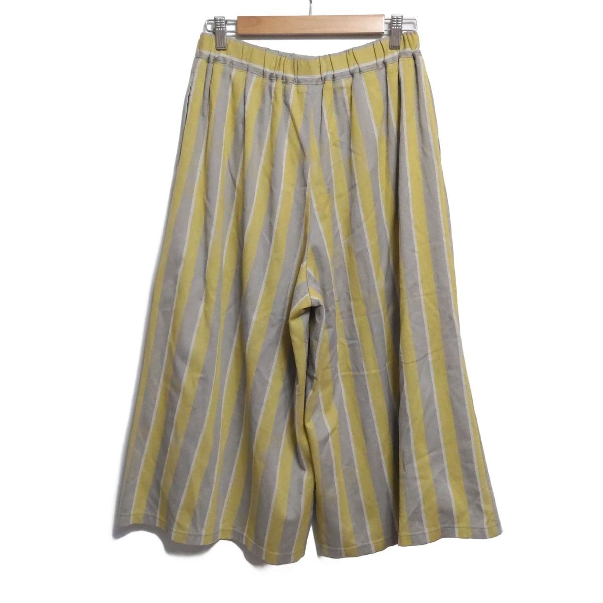 Plantation プランテーション パンツ サイズM レディース - グレー×イエロー×白 クロップド 半端丈 |ストライプ|ウエストゴム