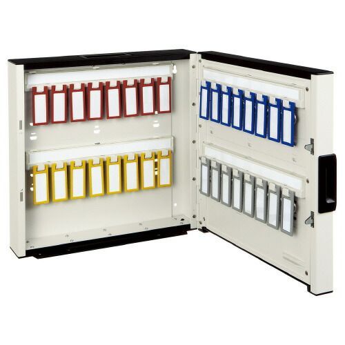 ●壁面固定はもちろん、キャビネットにも納まるコンパクト設計。●シリンダー錠タイプ●キーホルダー32個収納タイプ●サイズ/W317×D89×H310mm●材質/本体:スチール、キーホルダー:PP●質量/3.57kg●付属品/キーホルダー型名札32本:グレー・青・黄・赤×各8本、鍵2個、非常解錠キー2本、木ネジ4本●天地カバー・キーパネル・前面操作部・キーハンガーは再生ABS
