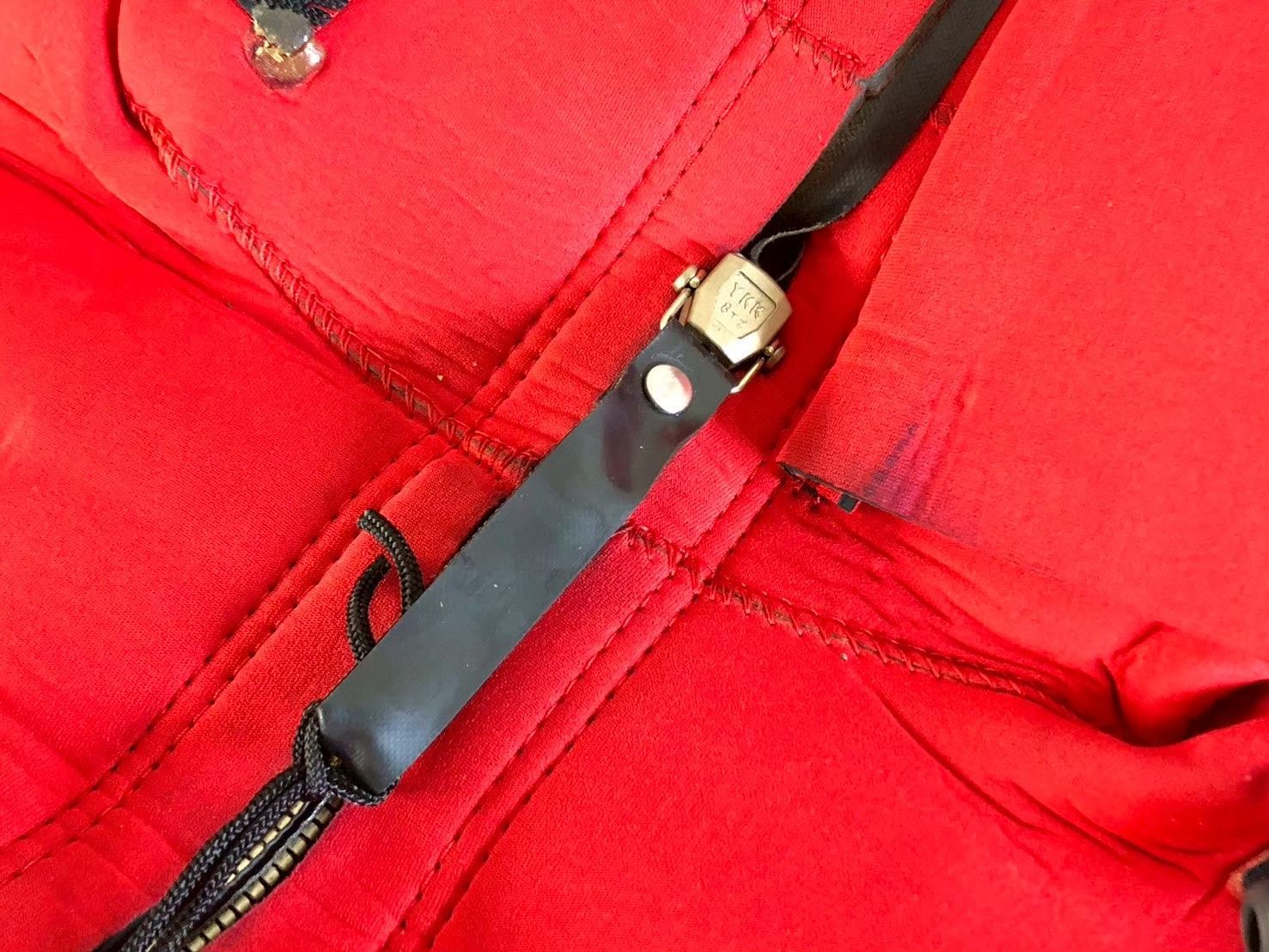 ☆ 肩の後ろには、海面に浮いた時に頭を起こして置けるようにインフレータブルヘッドサポートピローが設置されています。チューブから息を吹き込んで浮力を大きくする事ができます。ピローには 2009年に就役した米海軍の補給艦 『USNS KALLY SCHIRRA』で使用されていたことを示すステンシルが入っています。