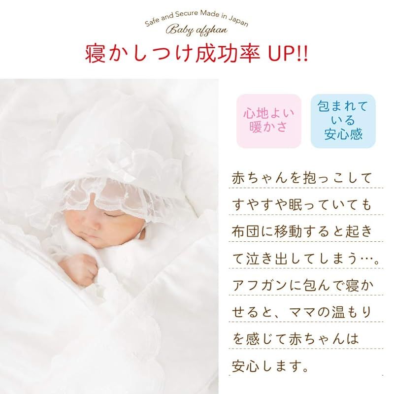 【純真無垢な赤ちゃんに】何色にも染まっていない純真無垢な赤ちゃんのためにデザインされた、大人気シリーズ「ベロアジャガード」のおくるみです。 【さまざまなシーンに】お出かけの時のおくるみとしてはもちろんのこと、お昼寝の肌掛けや、授乳時のケープや、おむつ換えのシーツなどいろんな場面で活躍してくれます。ご自身の出産準備用はもちろん、誕生日プレゼント、出産祝いや退院祝いなどのお祝い品としても最適です。 【さりげないデザイン】シンプルだけど飽きがこないデザインが好評です。 【日本製】生地から仕上げまで、安心安全・丁寧にお仕立てした日本製です。
