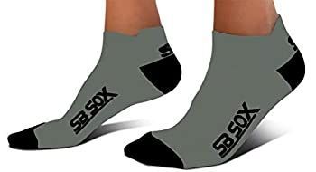 SBSOX超軽量コンプレッションランニングソックスメンズ&レディース(2ペア)-当社のコンプレッションソックスの完璧なオプション-ランニング/アスレチック/日常使用に最適なノーショウソックス(グレー/ブラック、ミディアム)