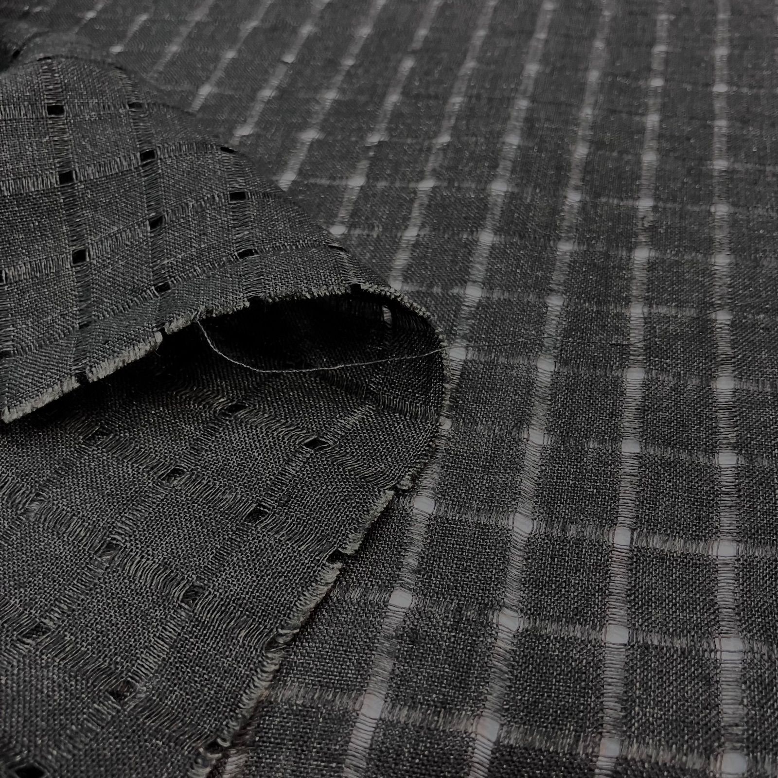 スミクロに近い暗めのお色で、格子状に織られ、部分的に透け感のある素敵な生地です^^