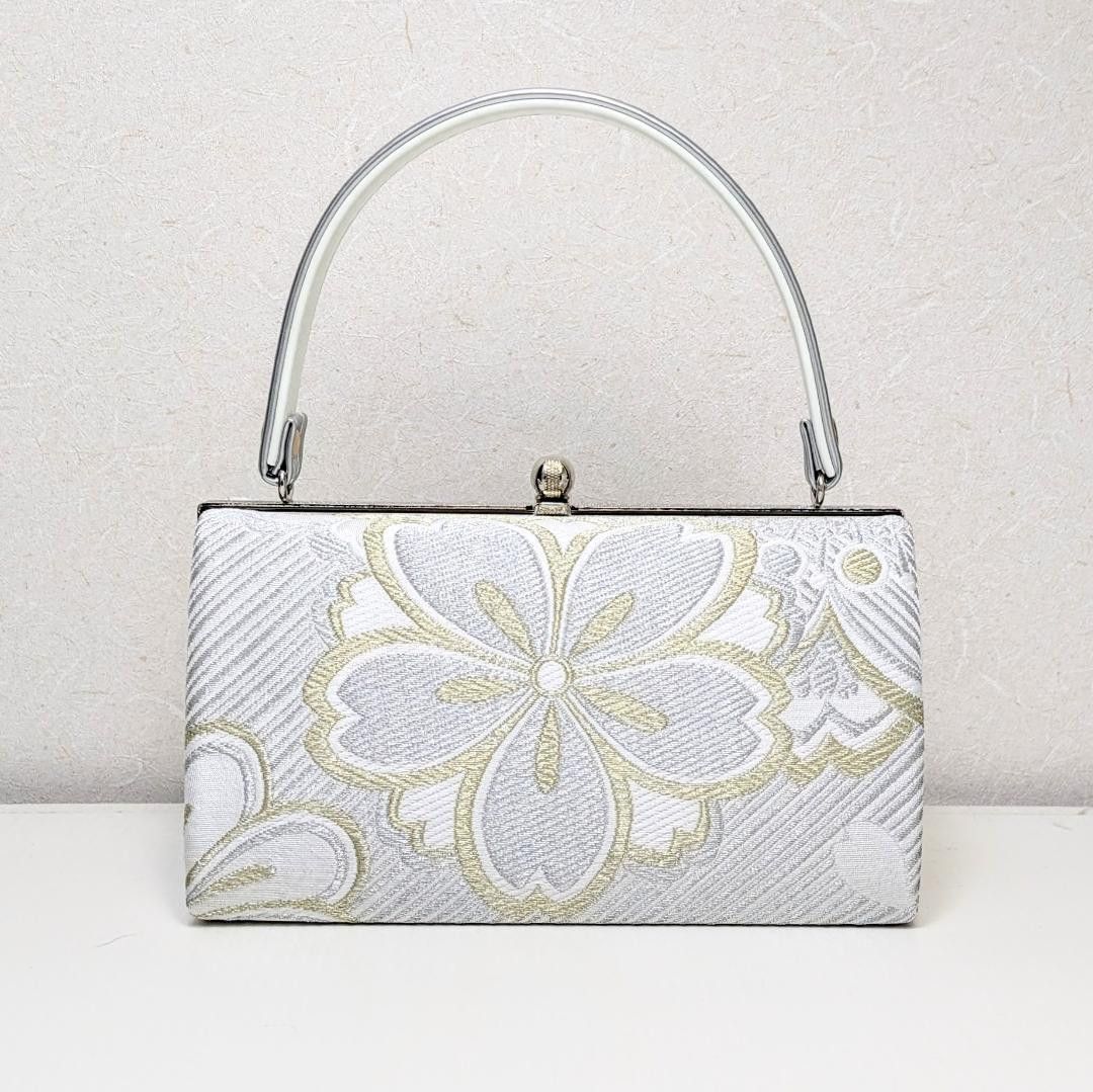 和装 草履バッグセット 帯地 桜 白×銀 芯 フリーサイズ k 19-9