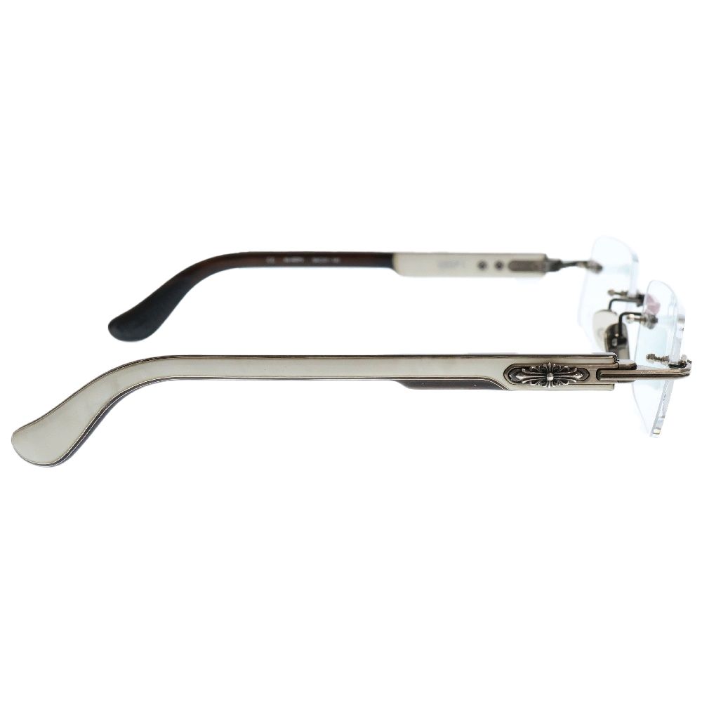 CHROME HEARTS クロムハーツ DEEP I サイドフローラルクロスフレームリムレス眼鏡 アイウェア メガネ ブラウン シルバー