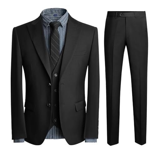S_ブラック [YFFUSHI] スーツ メンズ ビジネス スリーピース 大きいサイズ 2つボタン 無地 S-4XL 大きいサイズ 結婚式 面接 就職(ブラック,S)