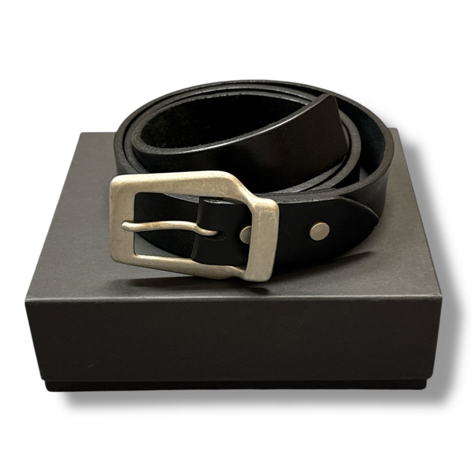 特徴:イタリアGUIDI社製オイルステアベンズレザーを使用。牛の背部から臀部の狭小な部位の革を使用した高品質ベンズレザーを採用。運動量の多く繊維が最も細かなベンズは、密度のある強靭な革となります。屈強且つ5mm厚の非常に耐久性の高いベンズレザー故、扱い難い革も分布しますが、GUIDI社によりオイルがたっぷりと含まれておりしっとりとした手触り、見違える程の柔軟な質感が魅力、希少価値の高い革になります。柔軟な質感に反したしっかりとしたハリとコシに加えて厚みのある皮革は、使用に伴って特別なエイジングをご期待いただけます。3cm幅のベルト帯に対し、新たに採用した形状の真鍮製バックルを装着したベルト。シンプルなデザインの中に男性的なスマートな印象を与える1ピンバックルは、ベンズレザー独自の素材の存在感を最大限に活かしています。多様なスタイルに永くご愛用いただける一本。