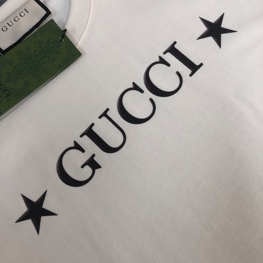 本日限定で特別価格にてご提供!GUCCIの2025年春夏最新デザインが楽しめるカップルTシャツです。ブラックとベージュの2色展開で、精巧なロゴプリントが特徴です。高級感あふれるデザインで、カップルでお揃いで着るのに最適です。
