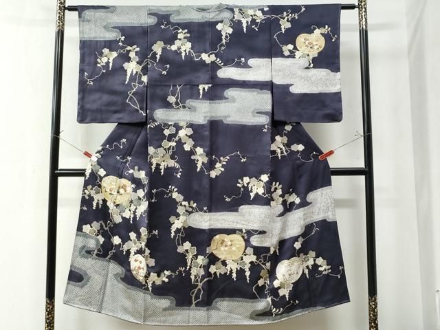 平和屋着物 訪問着 駒刺繍 絞り 葡萄蔦の葉草花文 金彩 正絹 yc