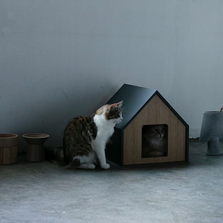ドイツ語で「山小屋」を意味する言葉“ヒュッテ”と名付けられたキャットハウスは、狭いところが好きな猫のためのコンパクトなおうちです。