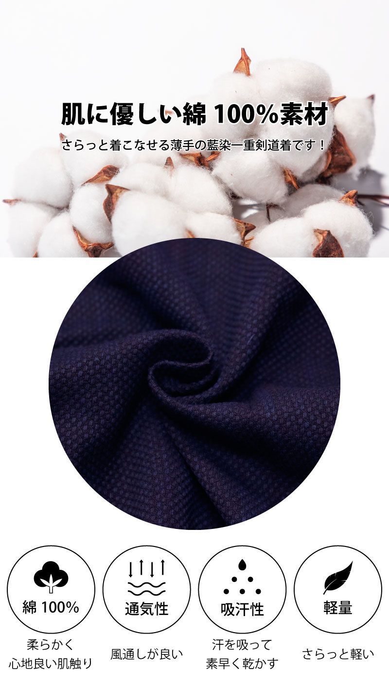 剣道着 A 1-α 一重実戦型剣道着 剣道 道着 薄手 軽量 藍染め 紺 刺繍ネーム5文字まで無料 武道園