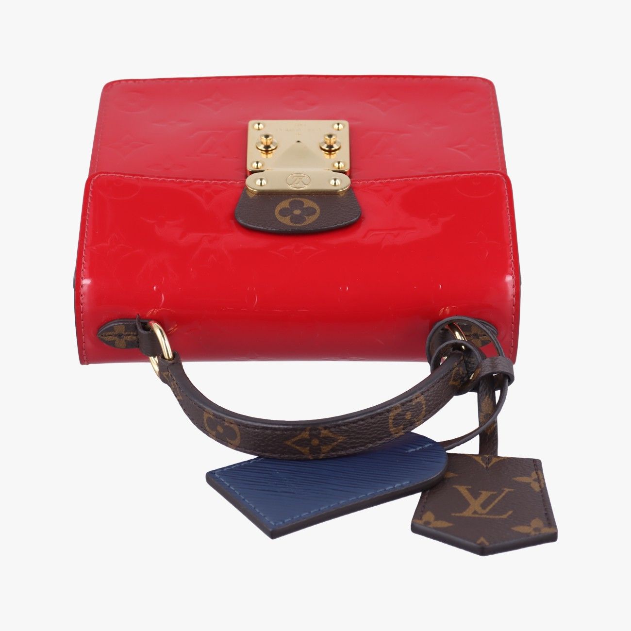 ルイヴィトンLouis VuittonスプリングストリートPMモノグラム|ブラウン系×スカーレット×ブルーヴェルニ×レザー×モノグラムキャンバス ICチップ
