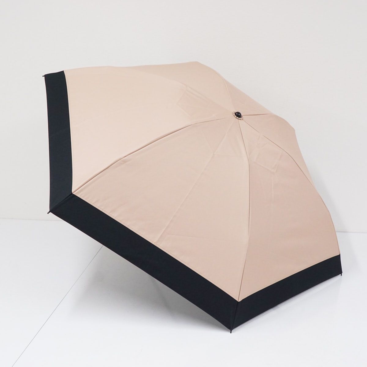 サンバリア100 完全遮光折日傘 3段折 コンビ ピンクベージュ×ブラック 折りたたみ 日傘 UVカット 遮熱 55 cm FS 8977