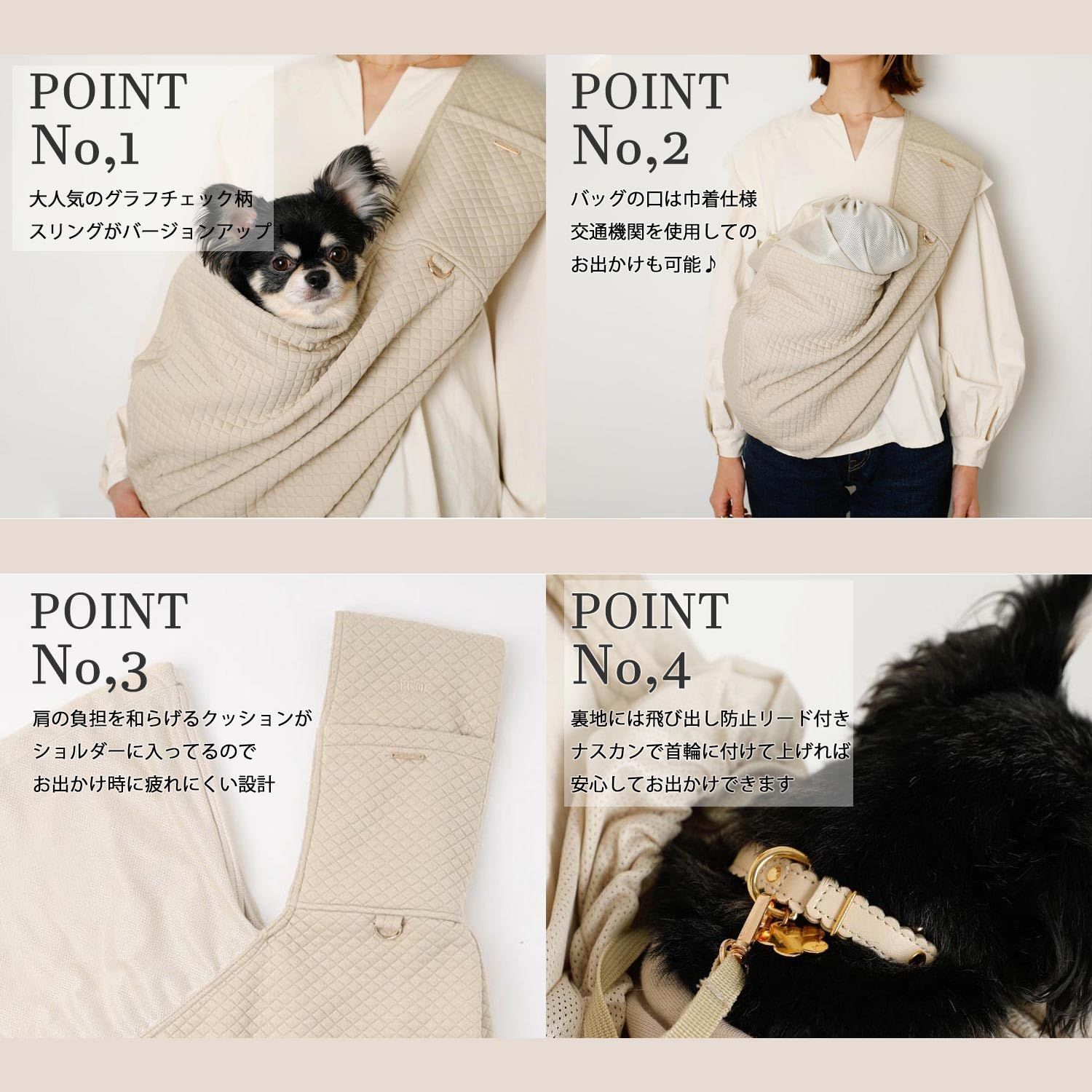【大人気商品がバージョンアップして発売!】大人気のグラフチェック柄のドッグスリングがさらにバージョンUPして登場!交通機関を使用してのお出かけが多い飼い主さまのご要望にお応えし、スリング口がメッシュ巾着仕様となりました。 軽量でシワにもなりにくい素材、三つ折りに折り畳み、コンパクトに持ち運びも可能です。スリングは深めの構造なので、愛犬ちゃんがリラックスしやすい空間に♪背中側でスリングの周囲の長さを調整できる仕様となっているため、ユニセックスでご使用も可能です◎寒い季節にアウターを着たままでも愛犬ちゃんを抱っこできます。