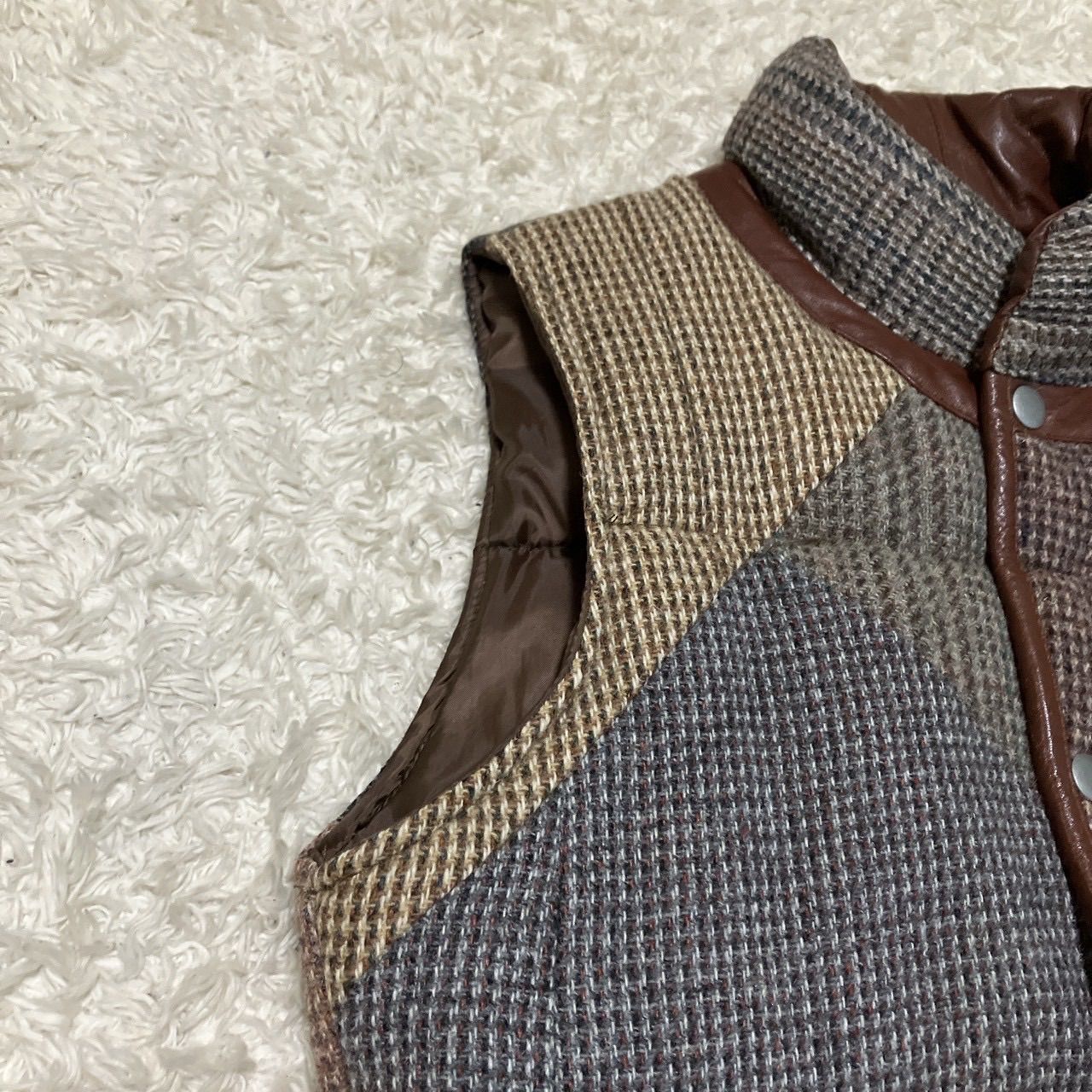 Harris Tweed ハリスツイード ウール パッチワーク ダウンベスト ヘリンボーン