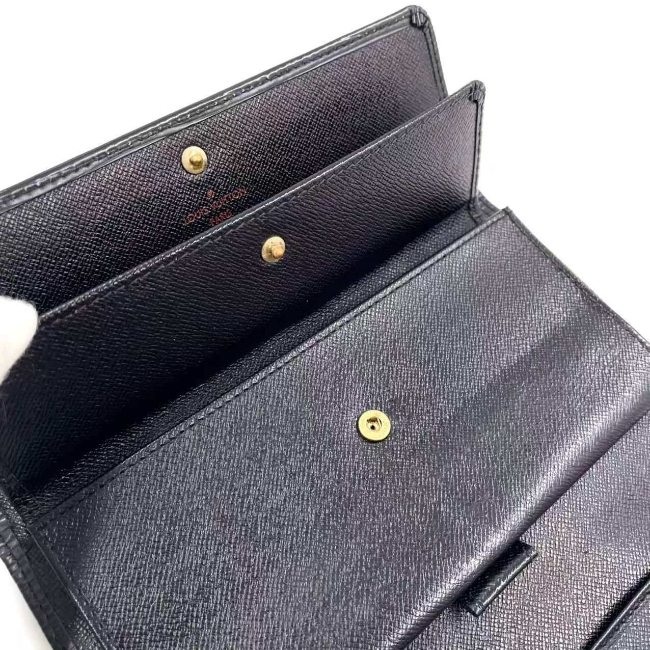LOUIS VUITTON ポルトトレゾール インターナショナル エピ ノワール レザー ブラック 三つ折り長財布 ゴールド M 63382