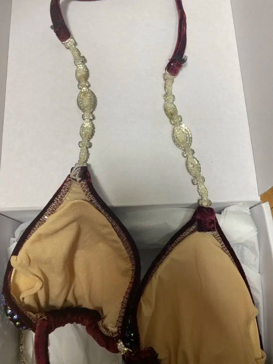 シーズンシーズンのビキニを競技用に販売しています。バーガンディカラーとキュービックの装飾が見事に埋め込まれているので、ステージで目立つことができます。収納ケースにしっかり詰め込まれていますわからないことがなければ、すぐに安心してお支払いできます!