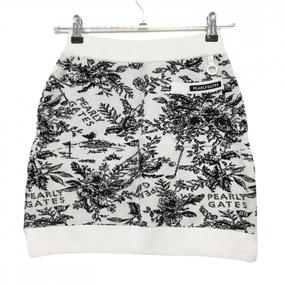 超 パーリーゲイツ ニットスカート 白×黒 花柄 ウエストゴム レディース 0 S ゴルフウェア PEARLY GATES