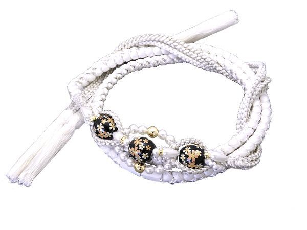 白と銀に大きめのパーツ、輝くパールと転写玉の豪華な帯締め!