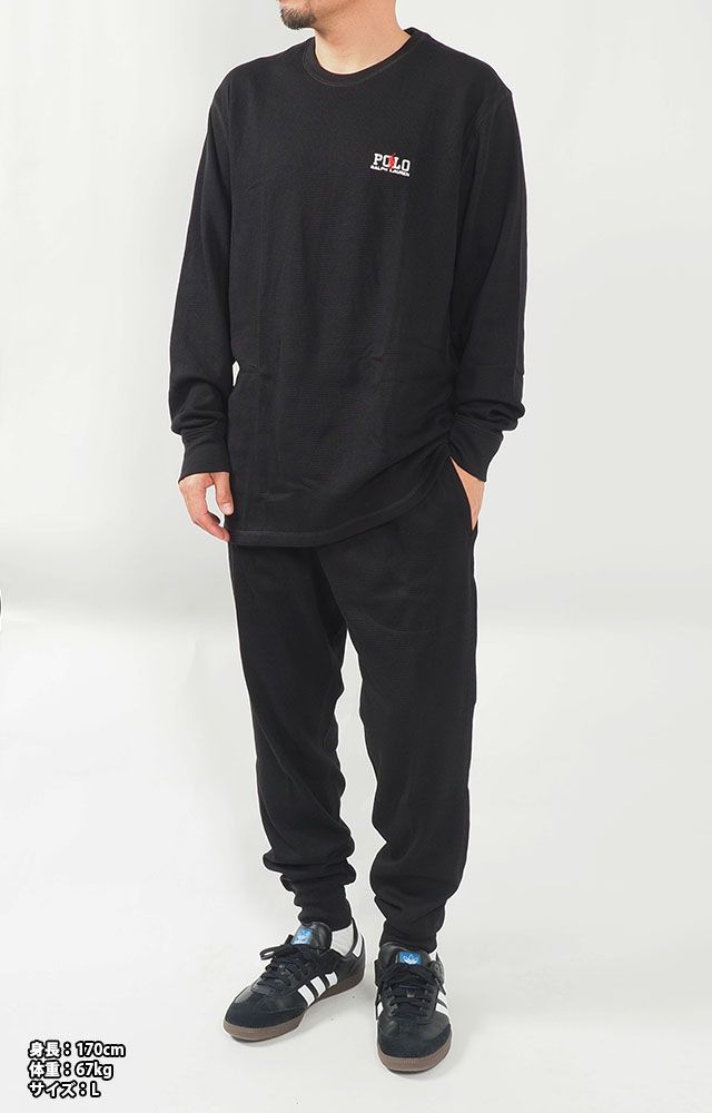 ポロ ラルフローレン 上下セット セットアップ ワッフルサーマル パンツ 長袖 ロンT M L XL サイズ アンダーウェア インナー 部屋着 パジャマ ルーム ウェア メンズ レディース 男 ブラック 黒 POLO RALPH LAUREN ポニー トッ