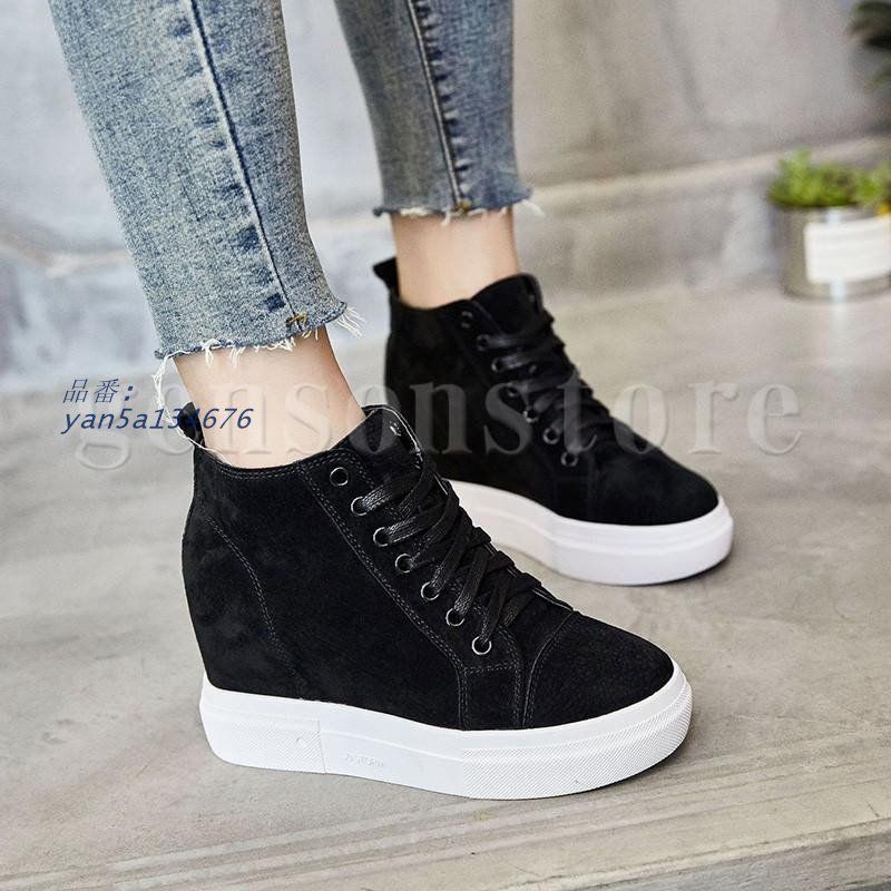 22.0 24.5 CMスニーカー インヒールスニーカー 8cmヒール レディース 疲れない 厚底スニーカー ウェッジソール 歩きやすい スエード 靴 レースアップ yan 5 a 134676