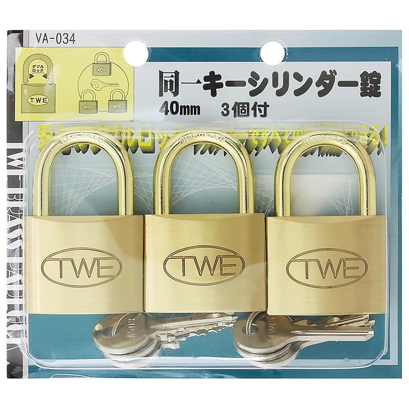 和気産業 Waki Sangyo TWE 同一キーシリンダー錠 南京錠 真鍮 ドア ポスト 防犯 付 40 mm VA-034 1