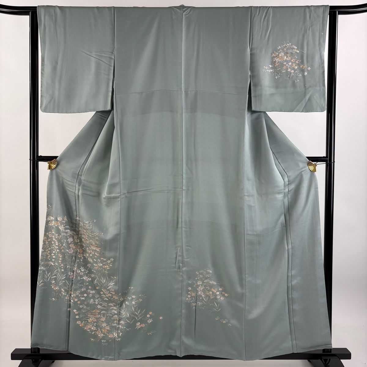 付下げ 身丈157 cm 裄丈63 S 袷 草花 松竹梅 刺繍 金糸 青灰色 正絹 秀品