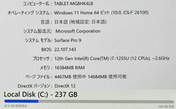 元 Microsoft マイクロソフト Surface Pro 9 QIL-00062 Model 2038 Win 11 Core i 7-1255 U 16 GB 256 タブレットPC