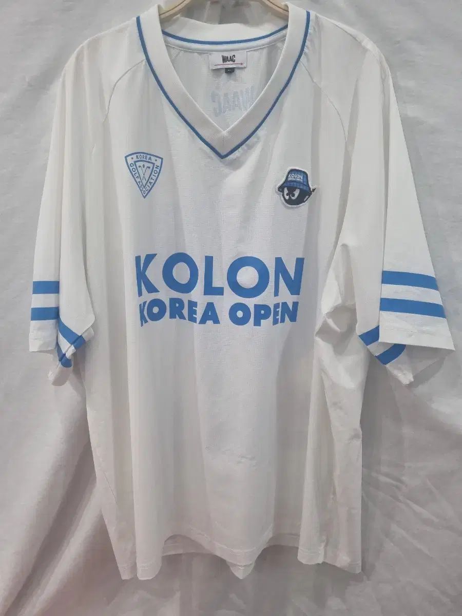 WAAC KOLONSPORT オープン Tシャツ 半袖です。白 바탕に青で POINT が入っており、涼しげに見えます。フィールドで涼しくスタイリッシュに着ていただけます。コメントなければすぐ安全決済してください!